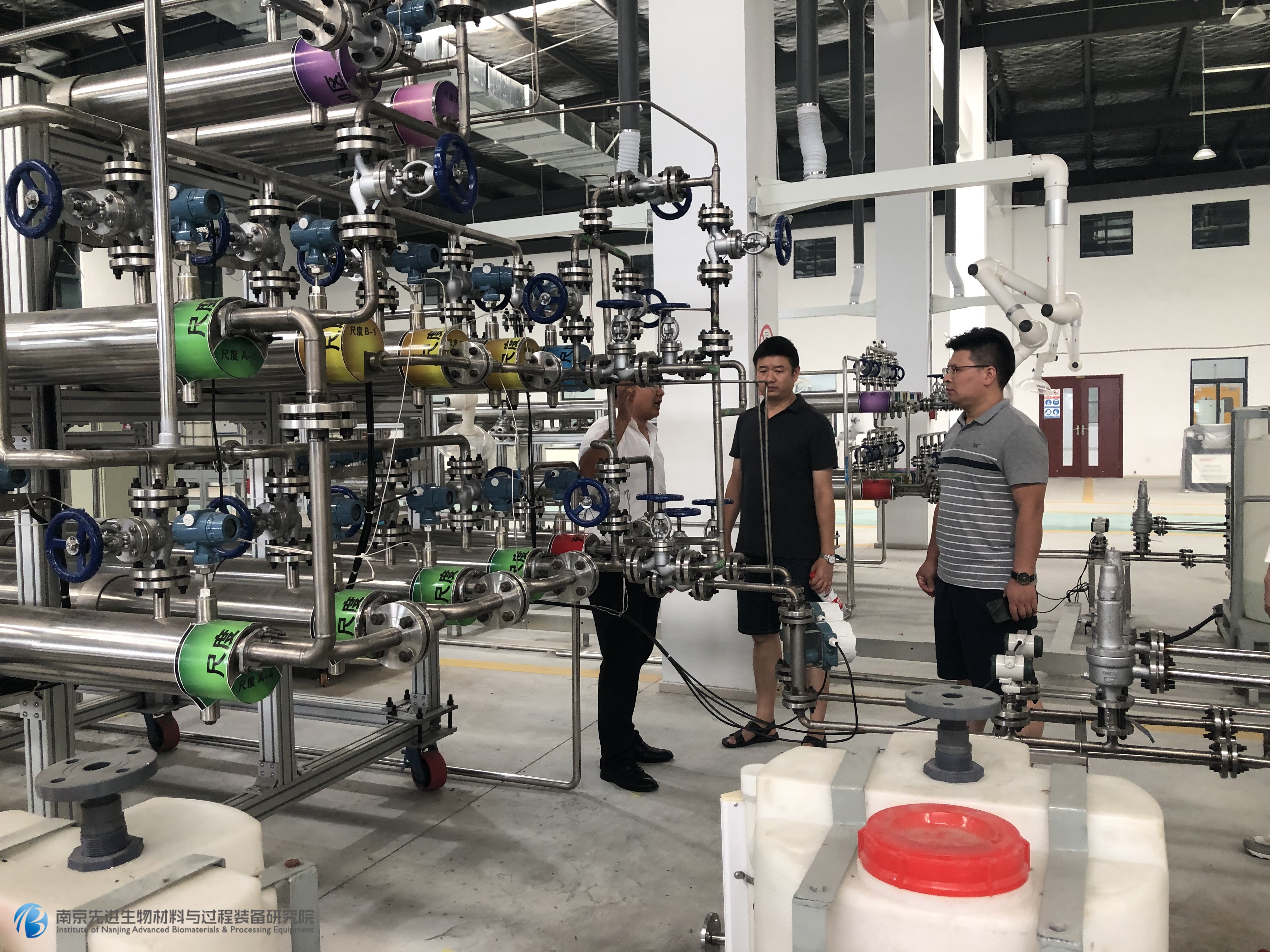 徐院長一行先來到展廳,李玉光博士向客人介紹了我院在生物基材料開發、微流場反應技術與配套工程裝備研制等方面的創新研發工作。