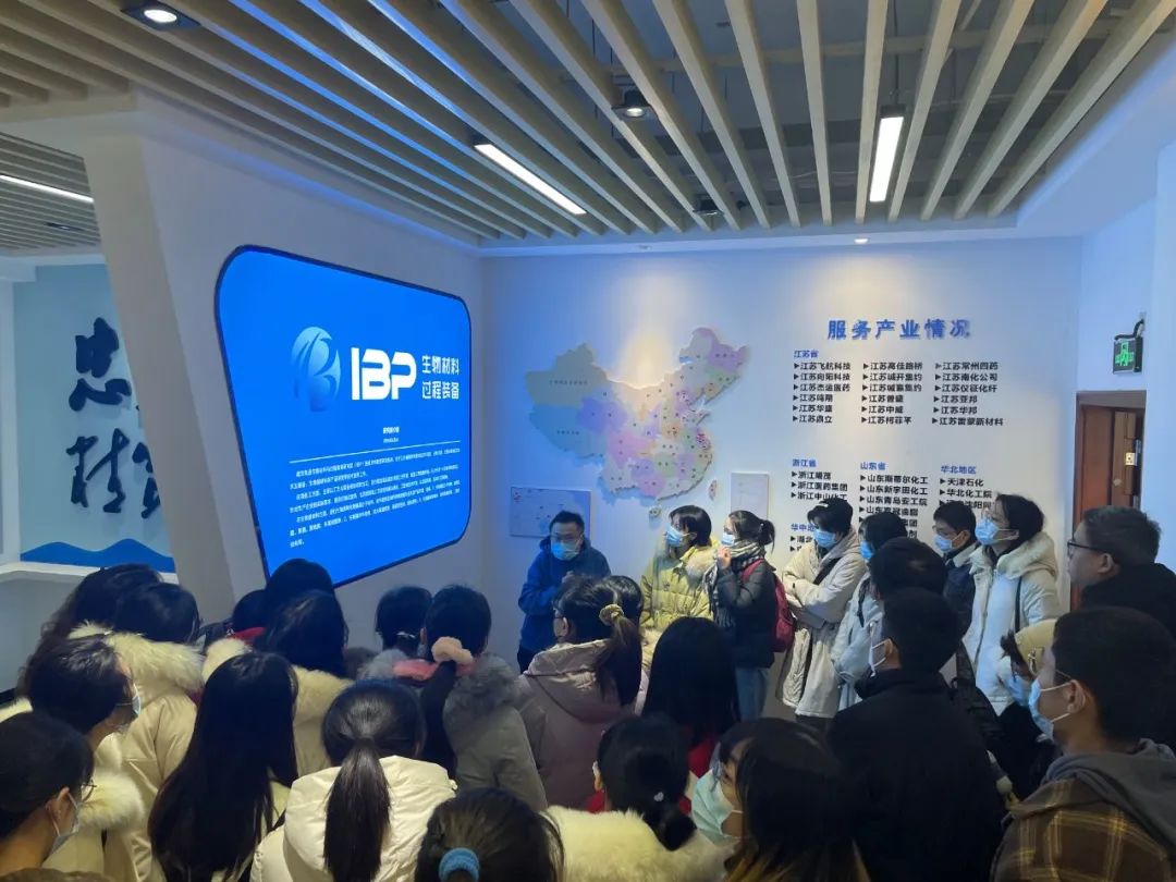 在展廳,張鍇博士給35位學(xué)生介紹了該院研究院的建設(shè)歷程和企業(yè)文化,以及研究院的定位、核心技術(shù)團(tuán)隊和研究院建設(shè)情況,還給大家介紹了企業(yè)核心技術(shù)如微流場技術(shù)、生物基材料技術(shù)等,用詳實的數(shù)據(jù)與實例展現(xiàn)了企業(yè)的工業(yè)業(yè)績,讓同學(xué)們更加了解研究院的工作方向與一流實力。